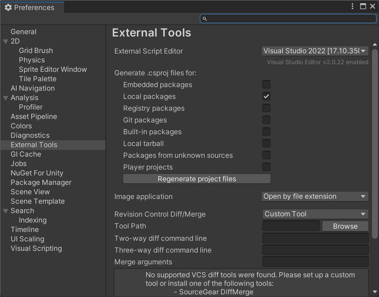 在 External Tools 中,将 Local packages 勾上,点击 Regenerate project files ,生成 Shared.csproj